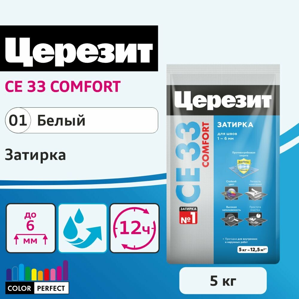 Купить Затирка для плитки Ceresit СЕ 33 Comfort (5кг) белый 01