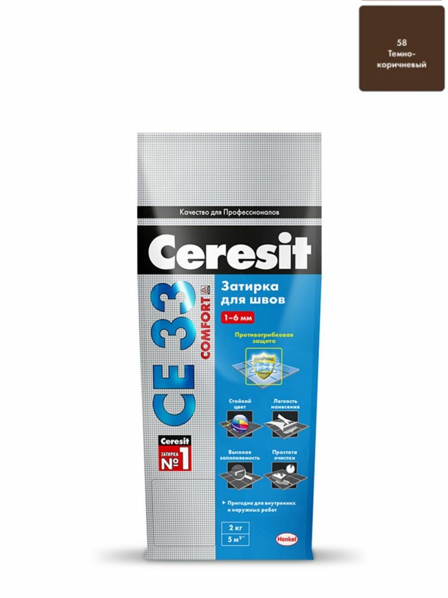 Затирка для плитки Церезит CE 33 №60, темный шоколад, 2 кг
