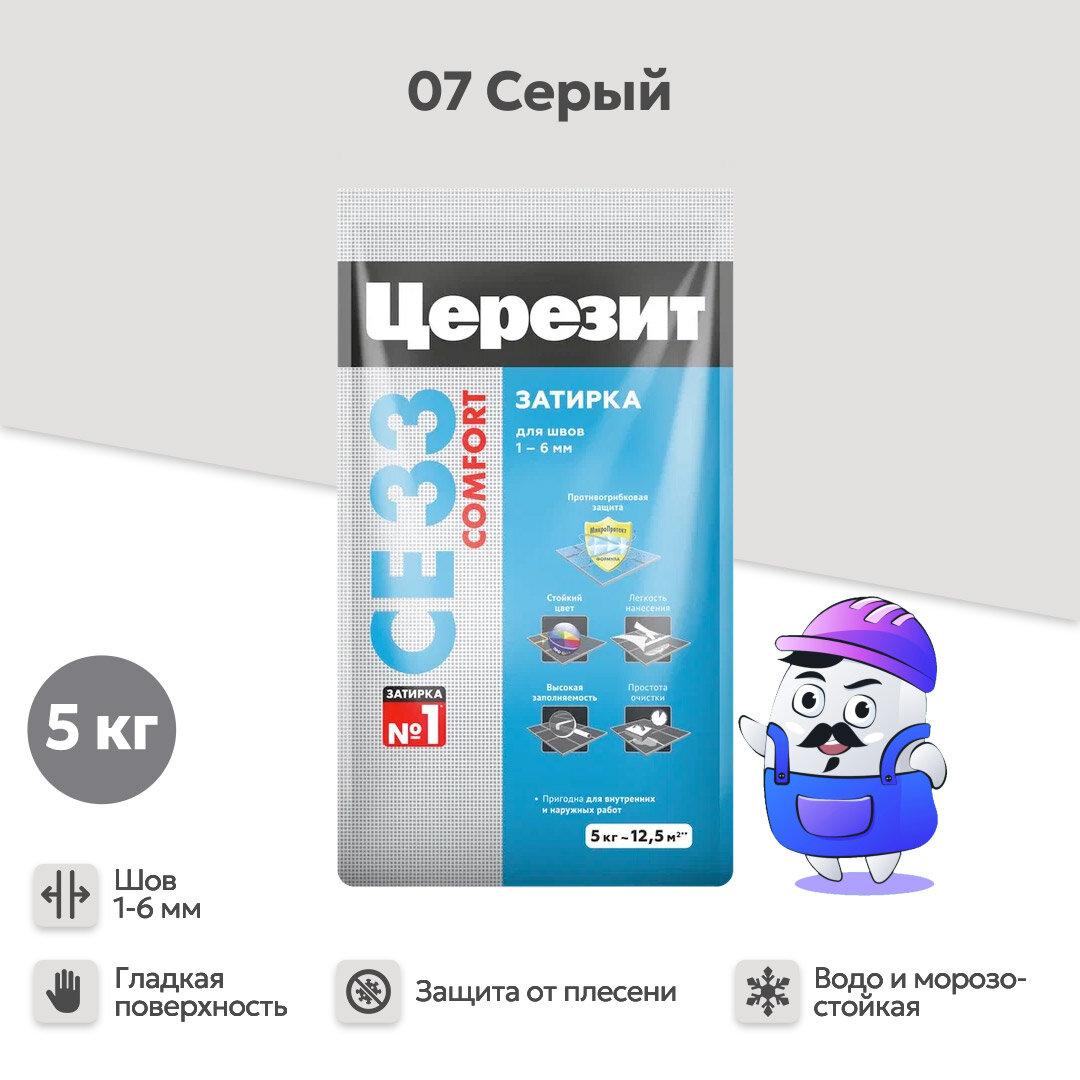 Затирка для швов плиточных облицовок до 6мм Церезит СЕ 33 Серый №07, 5кг