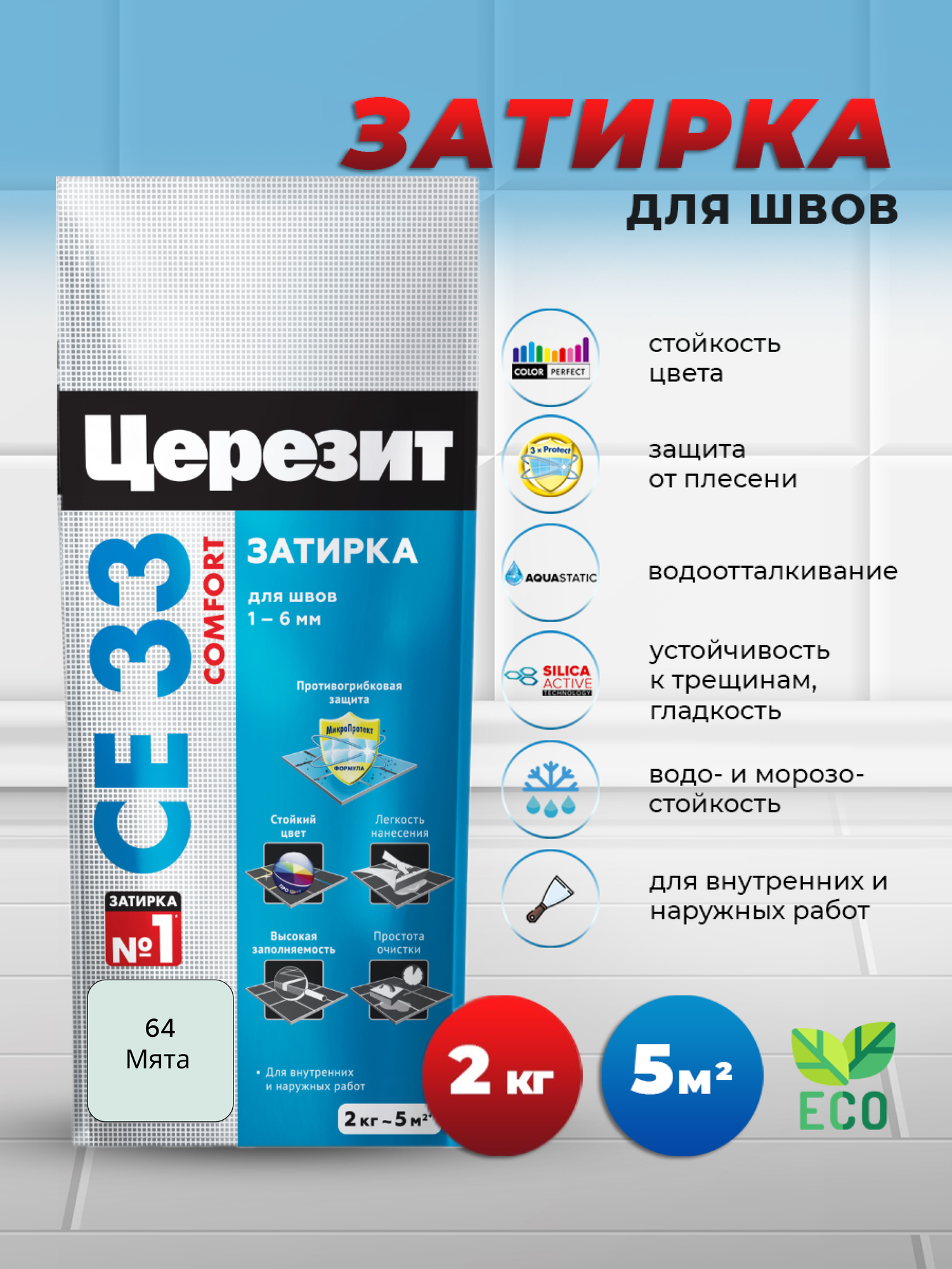 Купить Затирка Церезит CE 33 Comfort №64 Мята 2кг