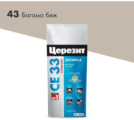 Затирка для Узких Швов 2кг до 6 мм Ceresit CE 33 Comfort Багама 43 / Церезит СЕ 33 Комфорт.