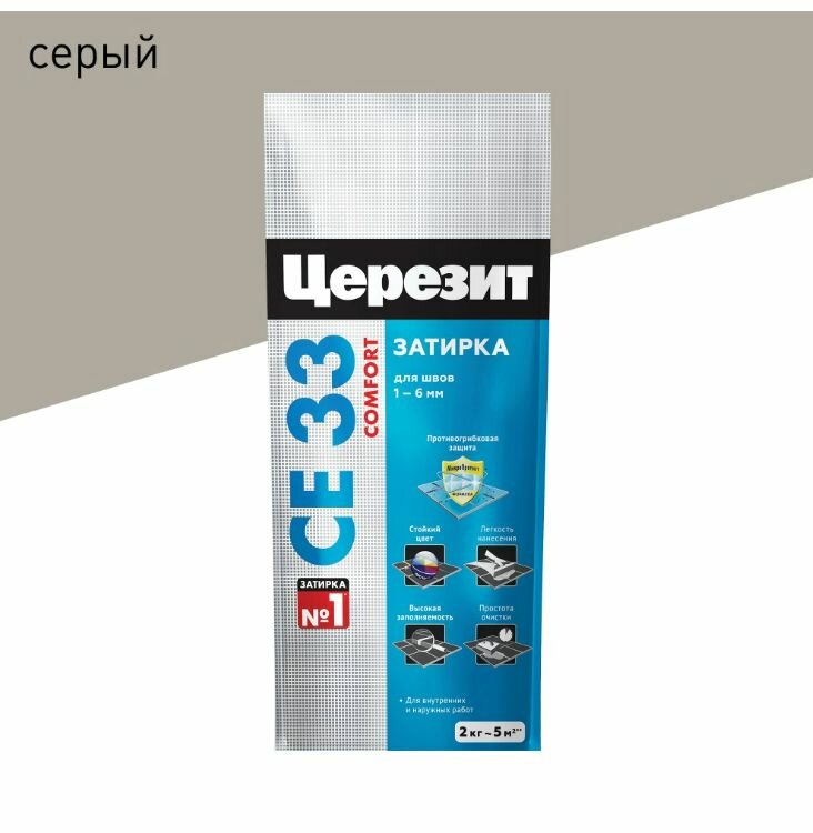 Церезит СЕ 33 затирка противогрибковая №41 натура (2кг) / CERESIT CE-33 Comfort затирка цементная для швов противогрибковая №41 натура (2кг)