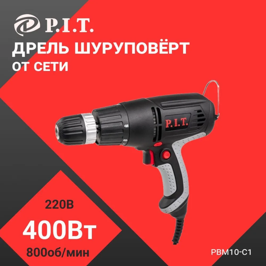 Дрель шуруповерт сетевой P.I.T. PBM10-C1 мастер (400Вт,0-800об/мин.) P.I.T. PBM10-C1, 400 Вт