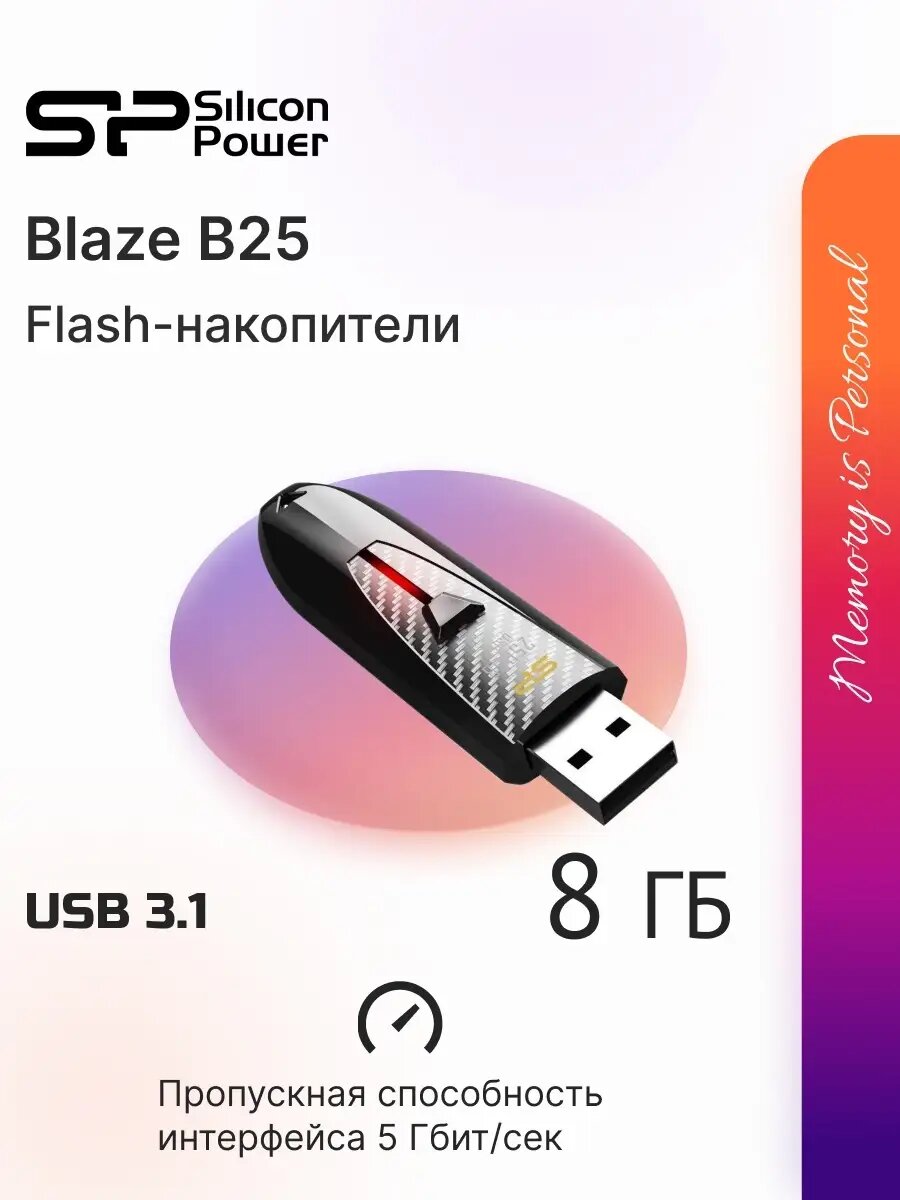 Купить Флешка Silicon Power Blaze B25 8 ГБ, 1 шт., черный