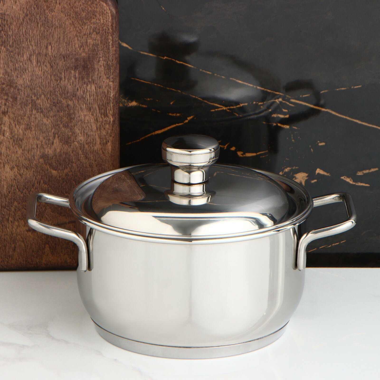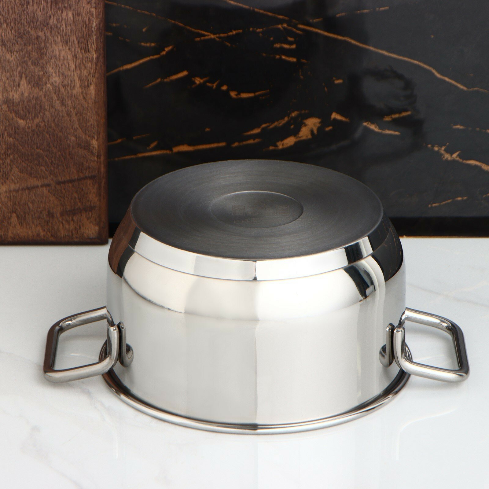 Кастрюля из нержавеющей стали Амет Классика-Прима с металлической крышкой 3л / посуда для газовых и электрических плит