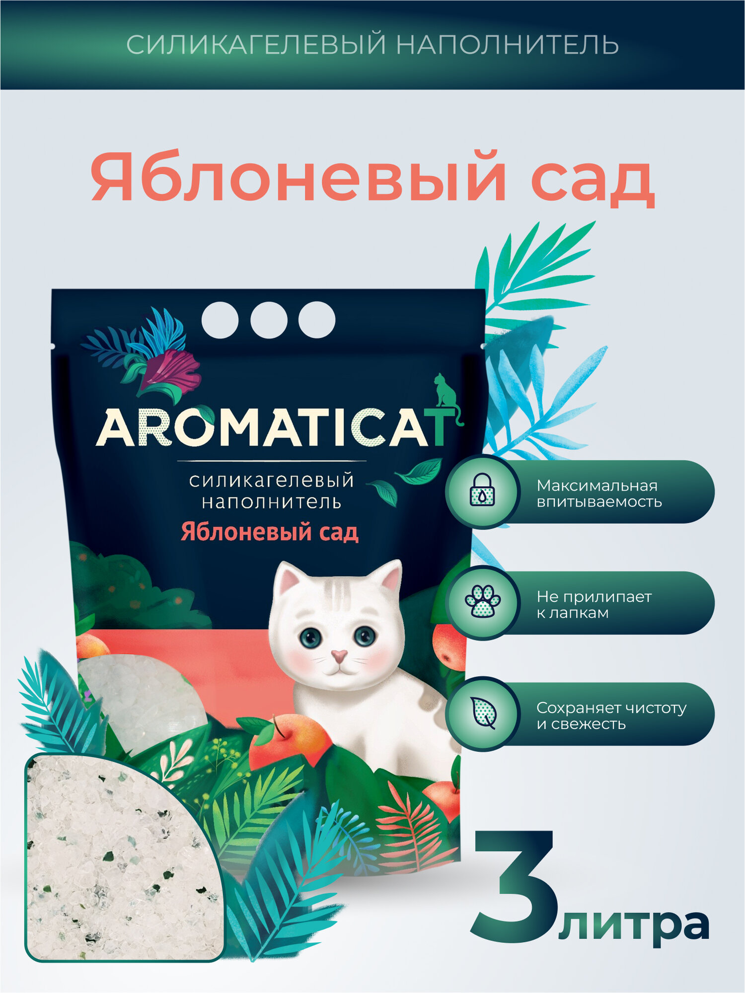 AROMATICAT яблоневый САД наполнитель силикагелевый для туалета кошек (3 л)