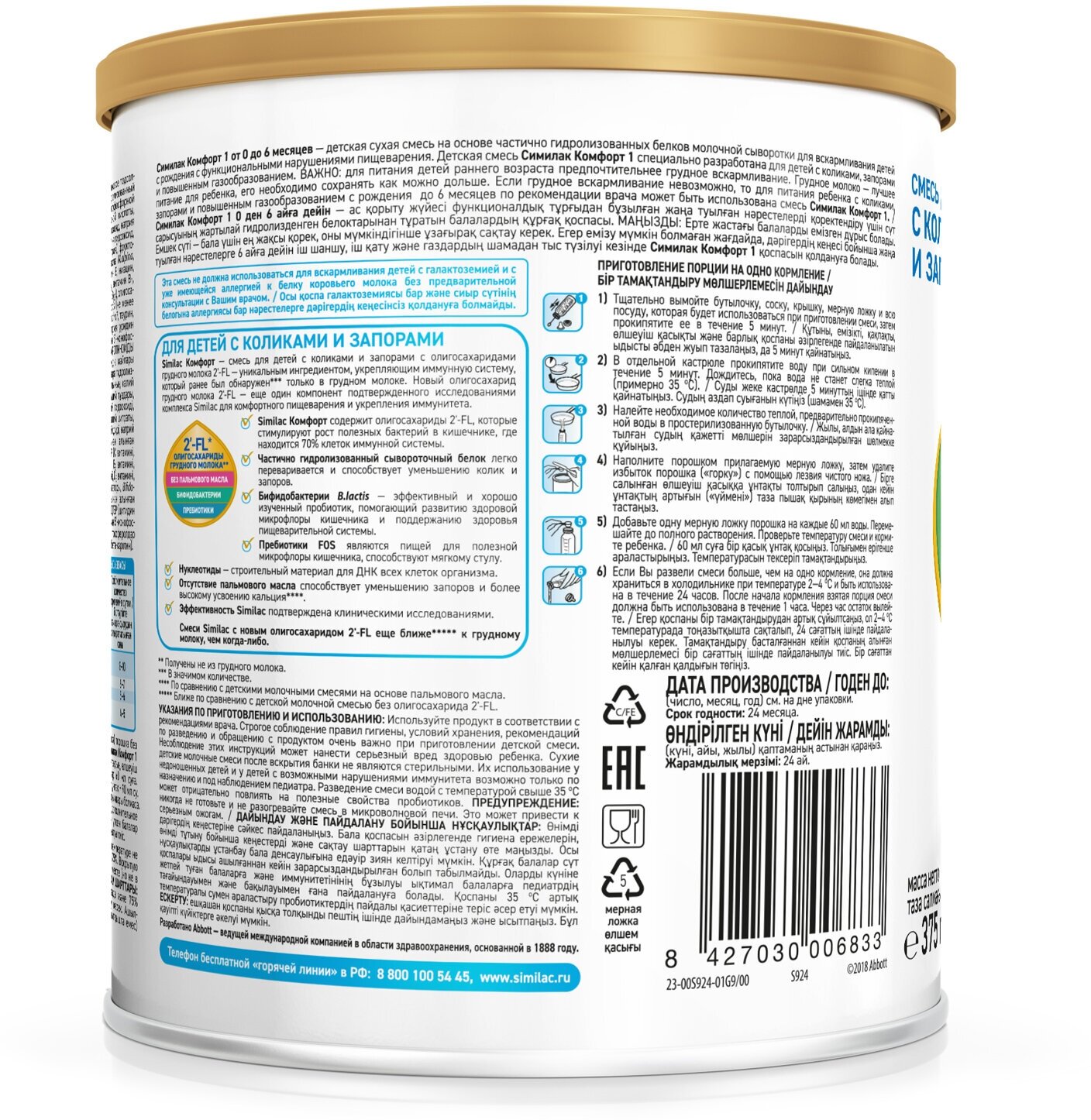 Купить Смесь Similac Комфорт 1 для детей с коликами и запорами, с 2'-FL для иммунитета, с рождения, 375 г