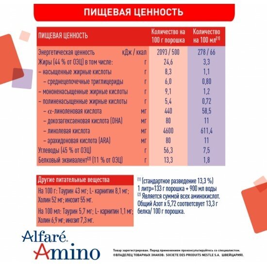 Cмесь Nestle Alfare Amino HMO 400г с 0месяцев интересное: