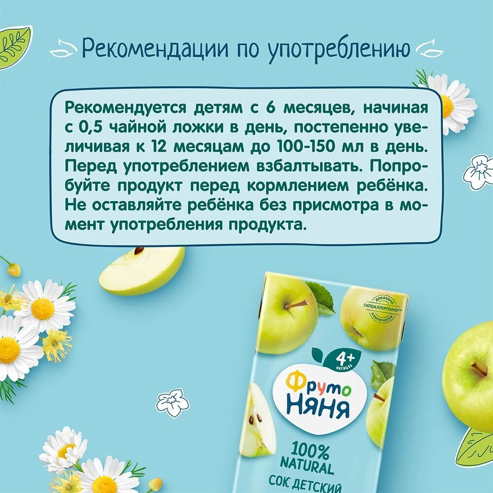 Напиток ФрутоНяня из яблок с экстрактами ромашки и липы, c 6 месяцев, 0.2 л