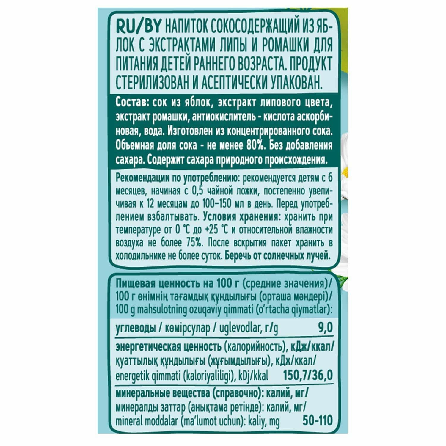 Сок яблоко-ромашка-липа для детей с 6 мес, 18х200 мл