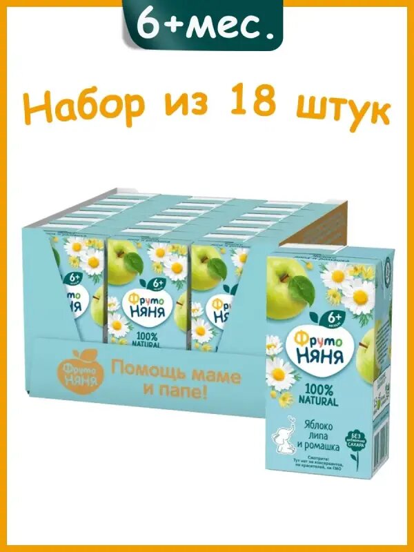 Купить Напиток Фрутоняня из яблок с ромашкой и липой 6 мес 0,2 л (18 штук в упаковке)