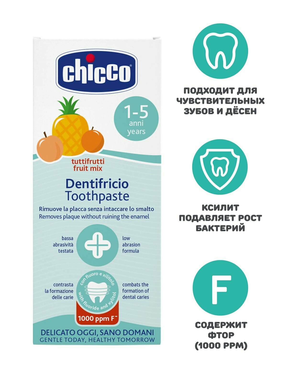 Купить Детская зубная паста с фтором (1000 ppm) CHICCO с фруктовым вкусом, без сахара, для детей от 12 месяцев, 50 мл