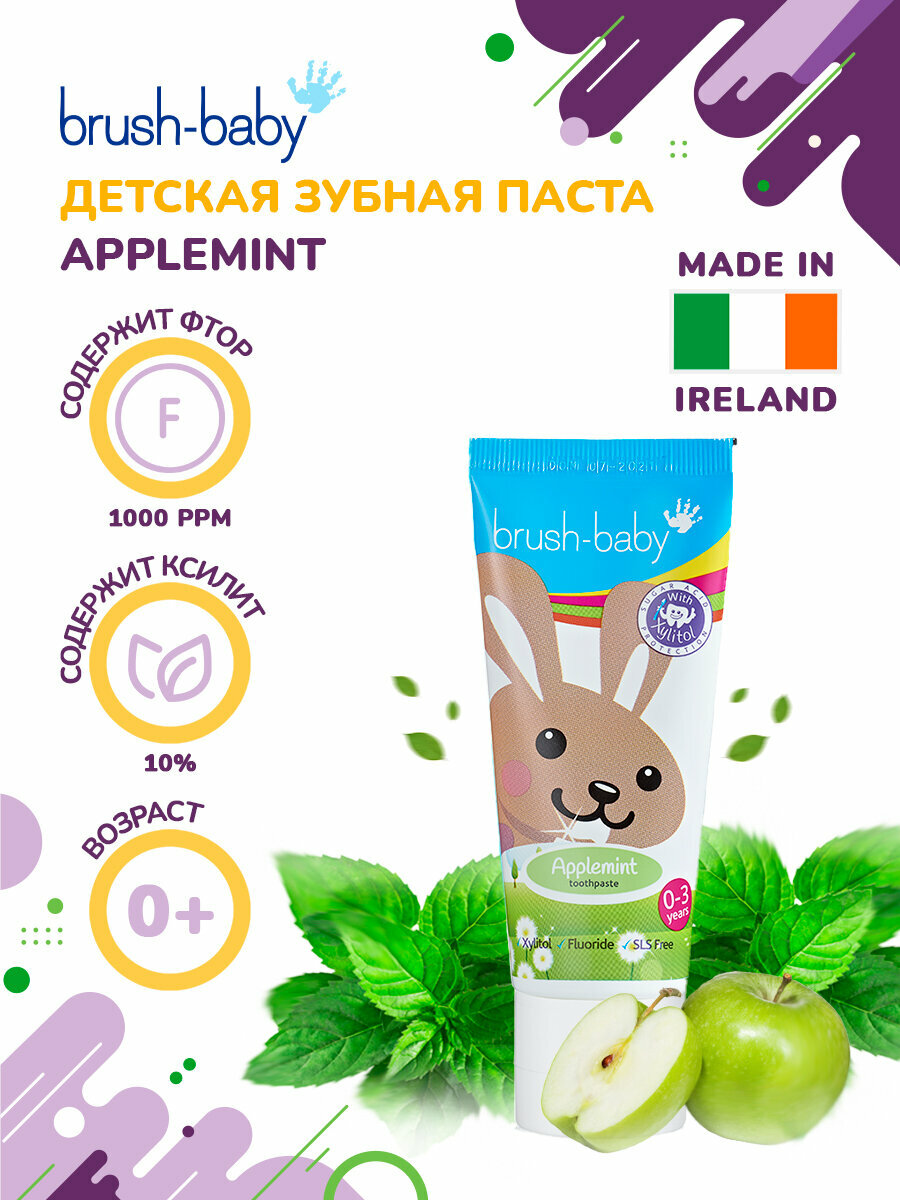 Детская зубная паста Brush-Baby, 0-3 года, яблоко-мята