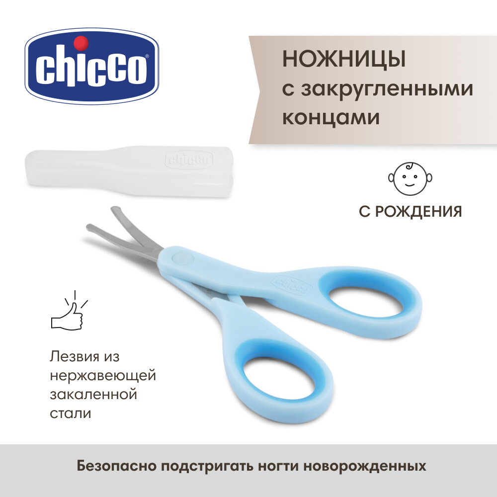 Ножницы детские Chicco из нержавеющей стали с закругленными концами, цвет голубой, 0/детские ножницы маникюрные/ножницы для новорожденных/детские ножницы для ногтей/chicco ножницы детские