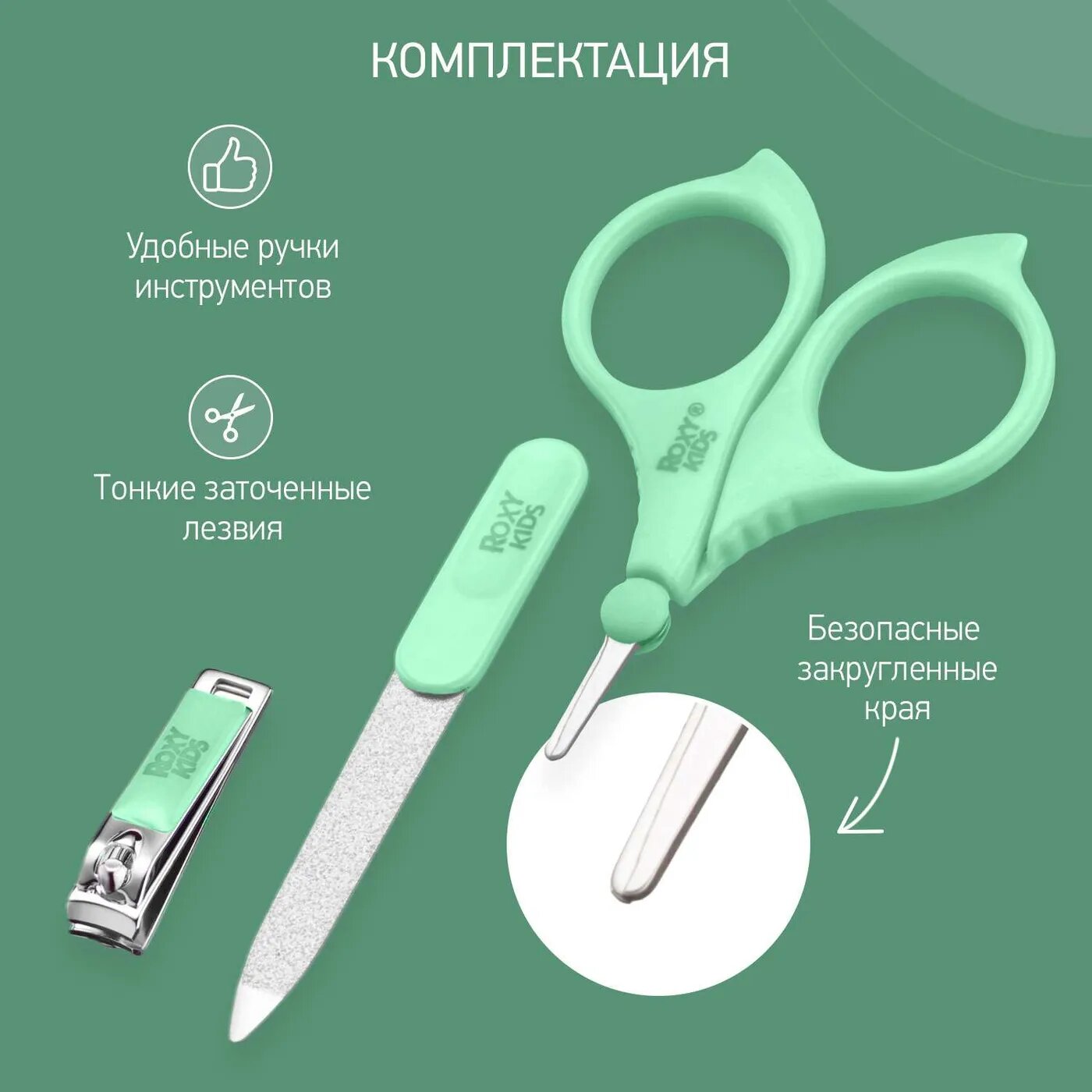 Маникюрный набор Roxy-kids RBM-001-G ножницы, пилочка, кусачки зеленый