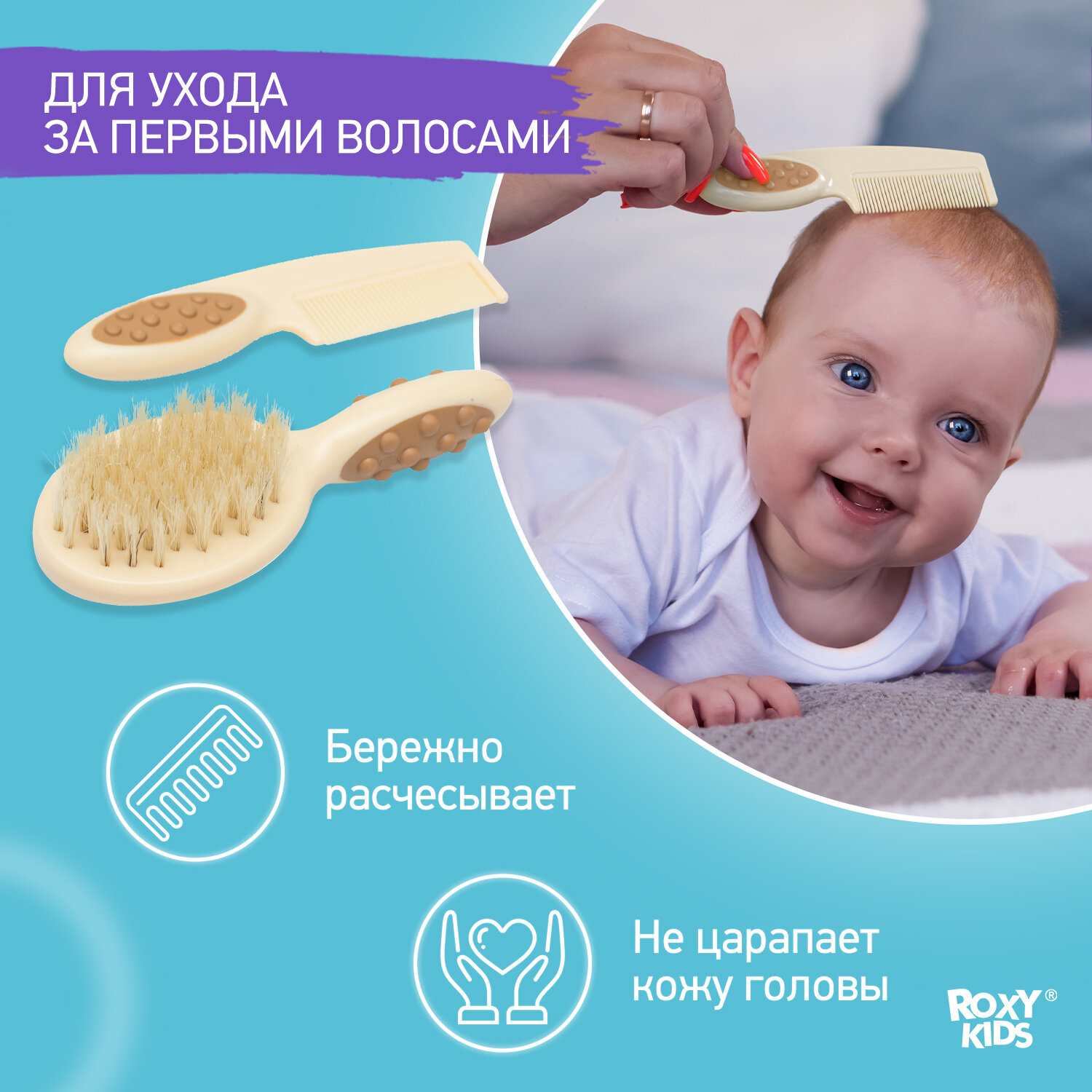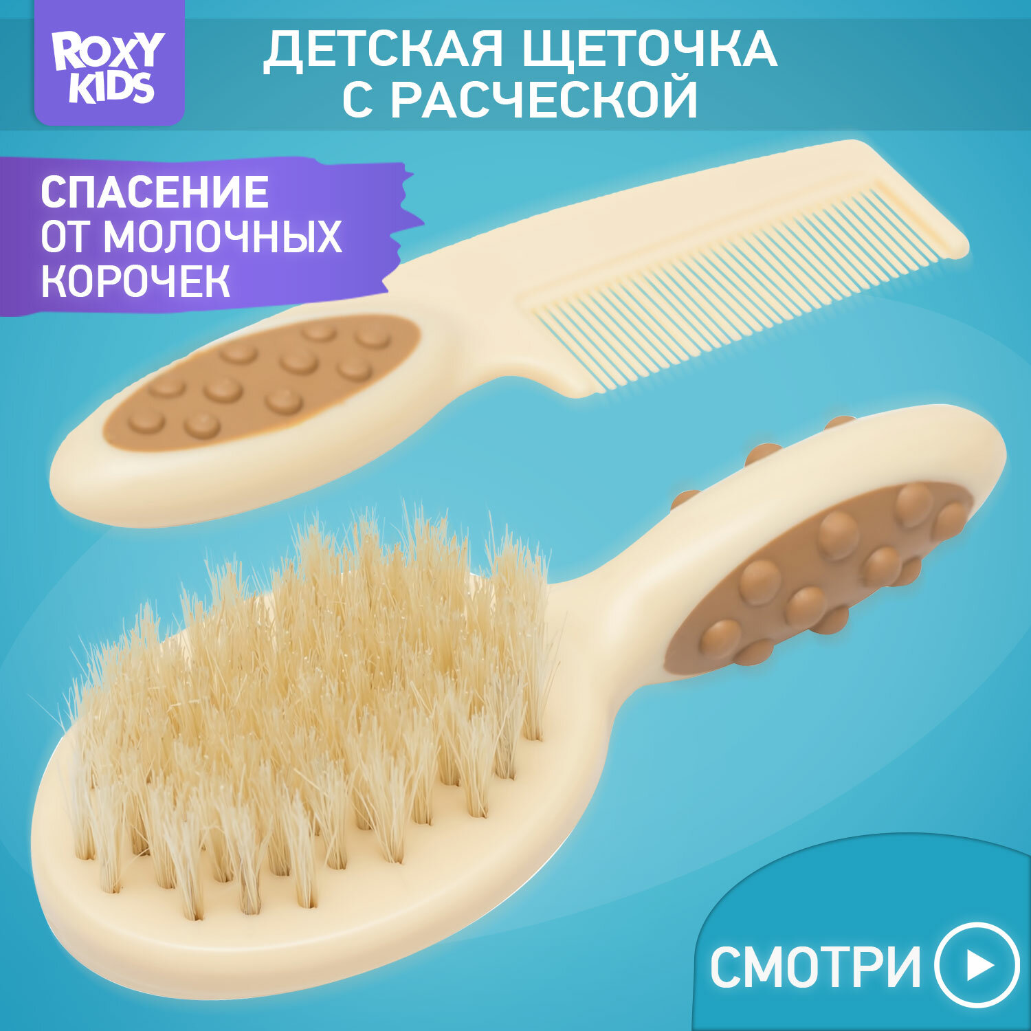 Детские расчёски, щётки Roxy-kids Детская щеточка с расческой, ворс из натуральной щетины