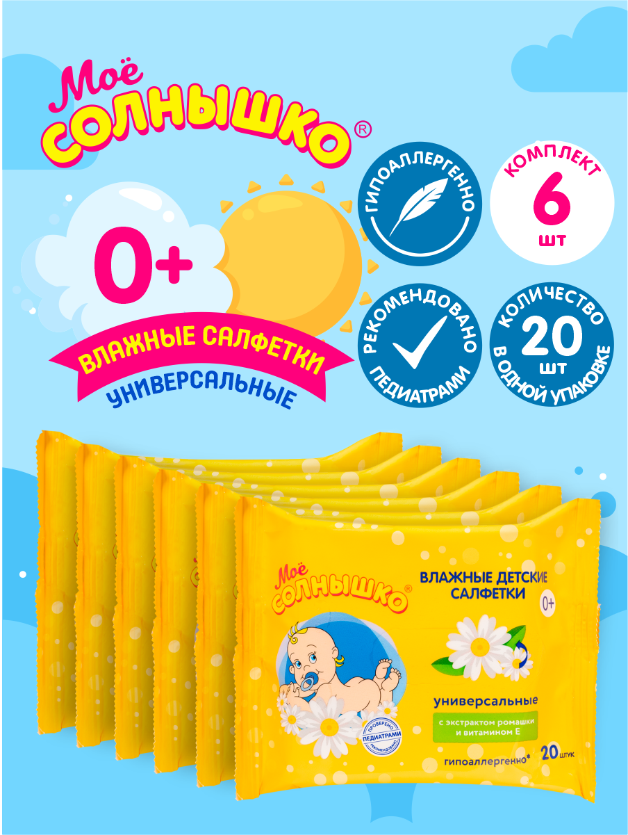 Купить Салфетки влажные детские универсальные Моё Солнышко №20 х 6 шт.