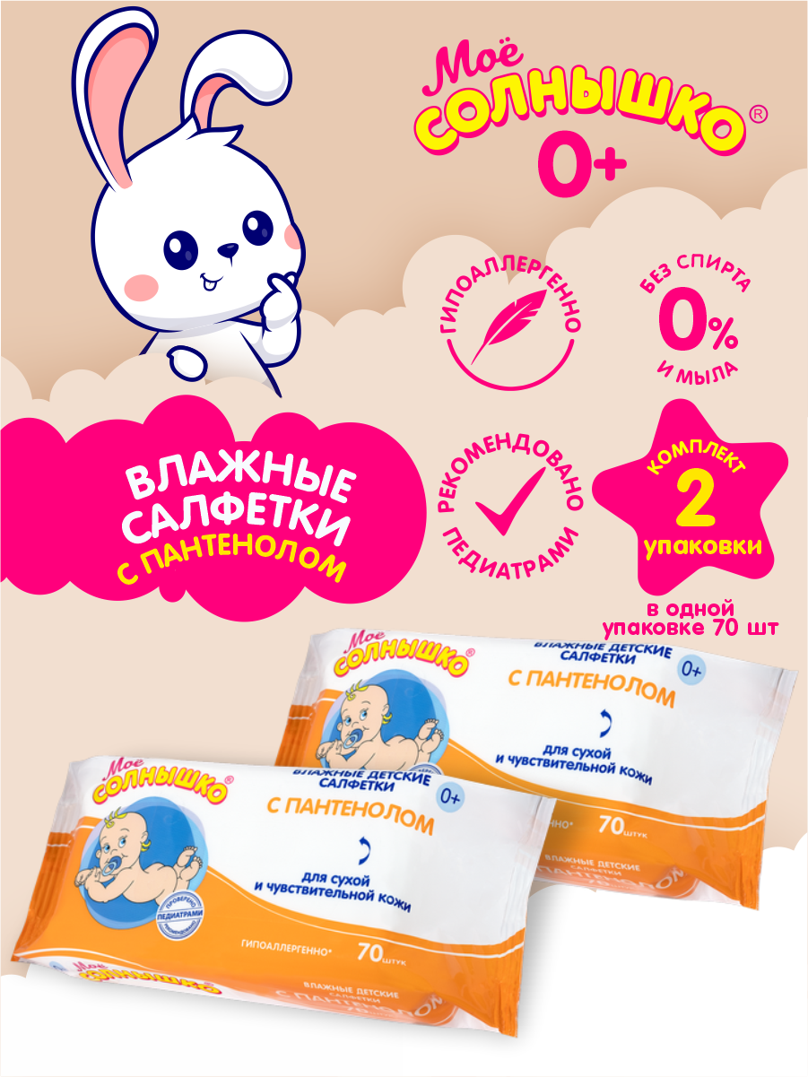 Купить Салфетки влажные детские с пантенолом Мое Солнышко №70 х 2 шт.