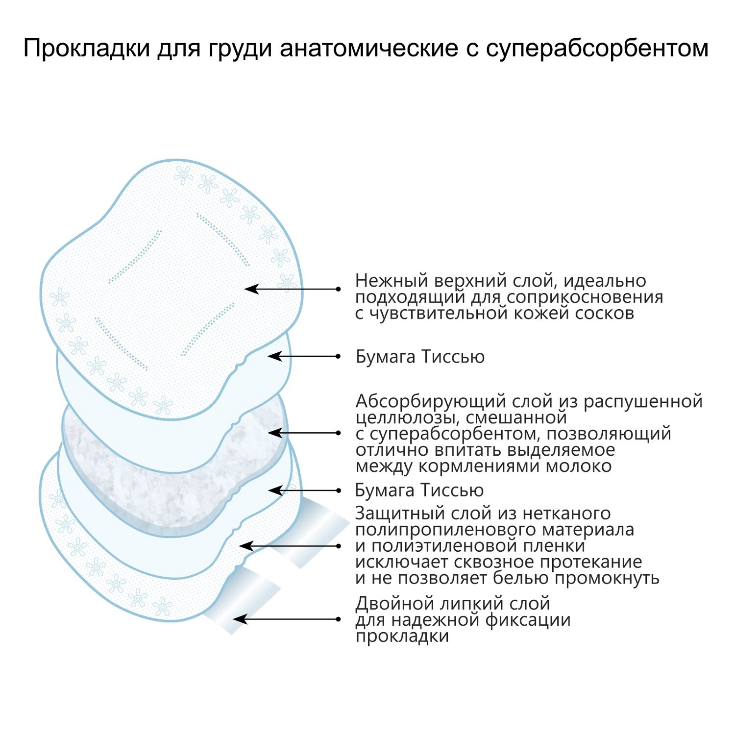 Прокладки-вкладыши лактационные с суперабсорбентом , анатомической формы "Belle Epoque" - 60 шт.