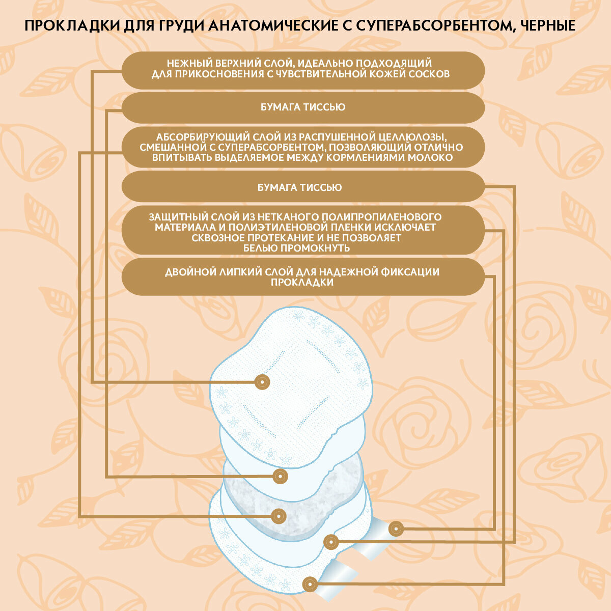 | Минусы: | Клейкая лента хуже чем у других аналогов. Прокладка может скататься в течение дня при снятии и одевании бюстгальтера для кормления. |