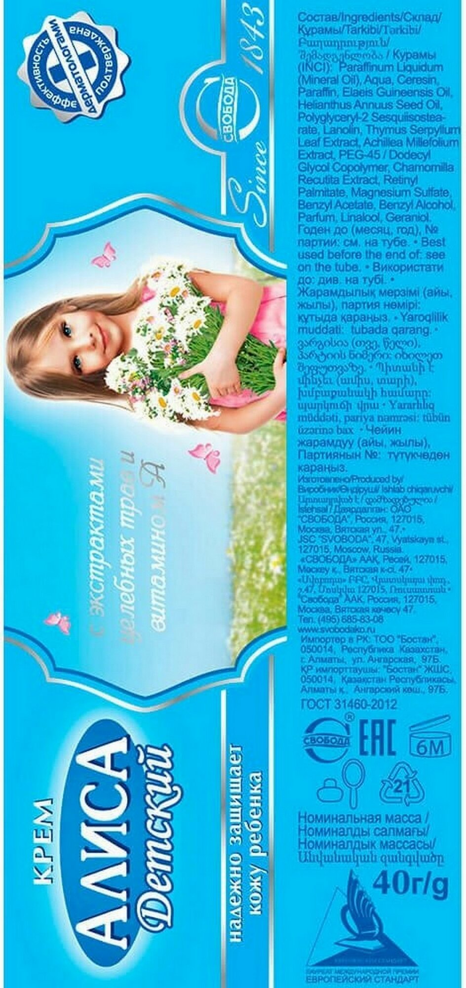 СохранитьСвобода Крем детский Алиса, 40 гр, 6 шт/ интересное: