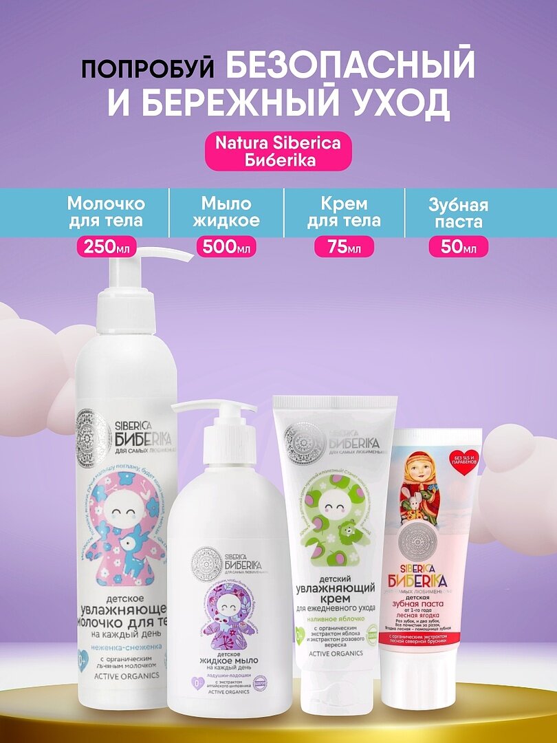 Увлажняющее детское молочко для тела на каждый день Natura Siberica Siberica Biberika "Неженка-снеженка"