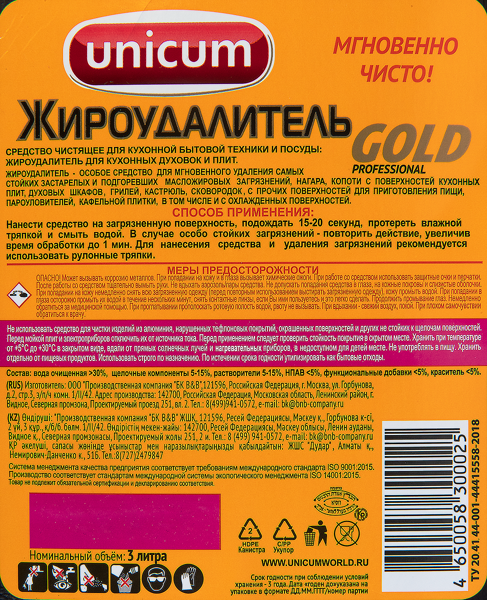 Жироудалитель UNICUM Gold 3л 4650058300025