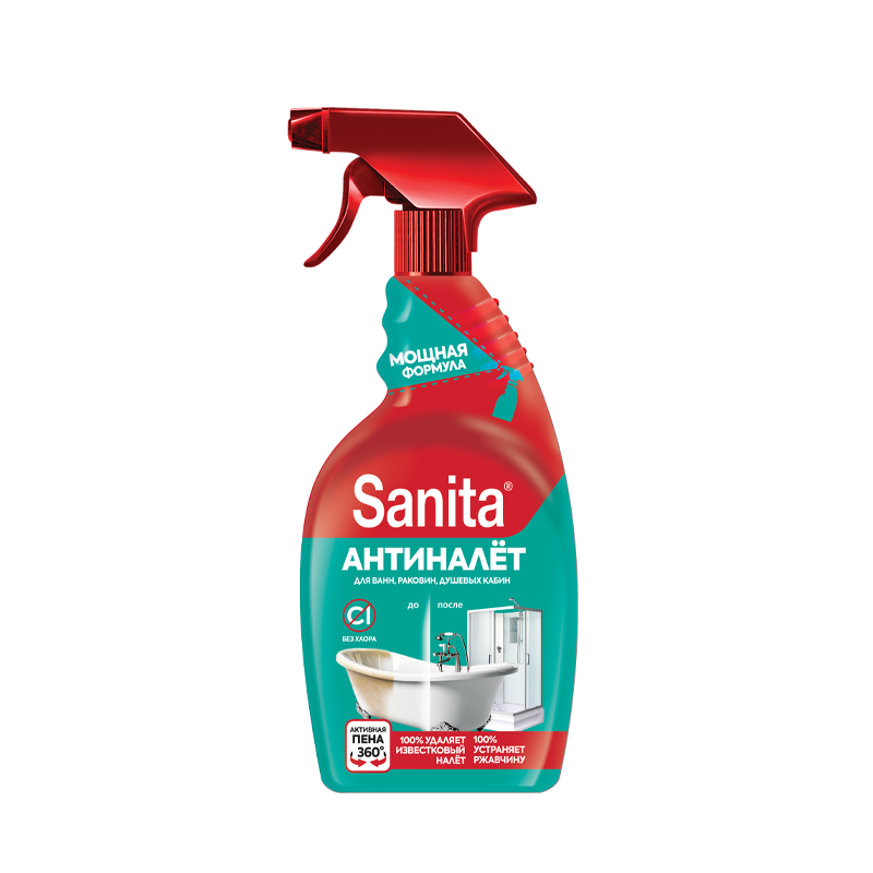 Чистящее средство Sanita "Антиналет и Антиржавчина", для ванн, раковин и душевых кабин, 500 мл