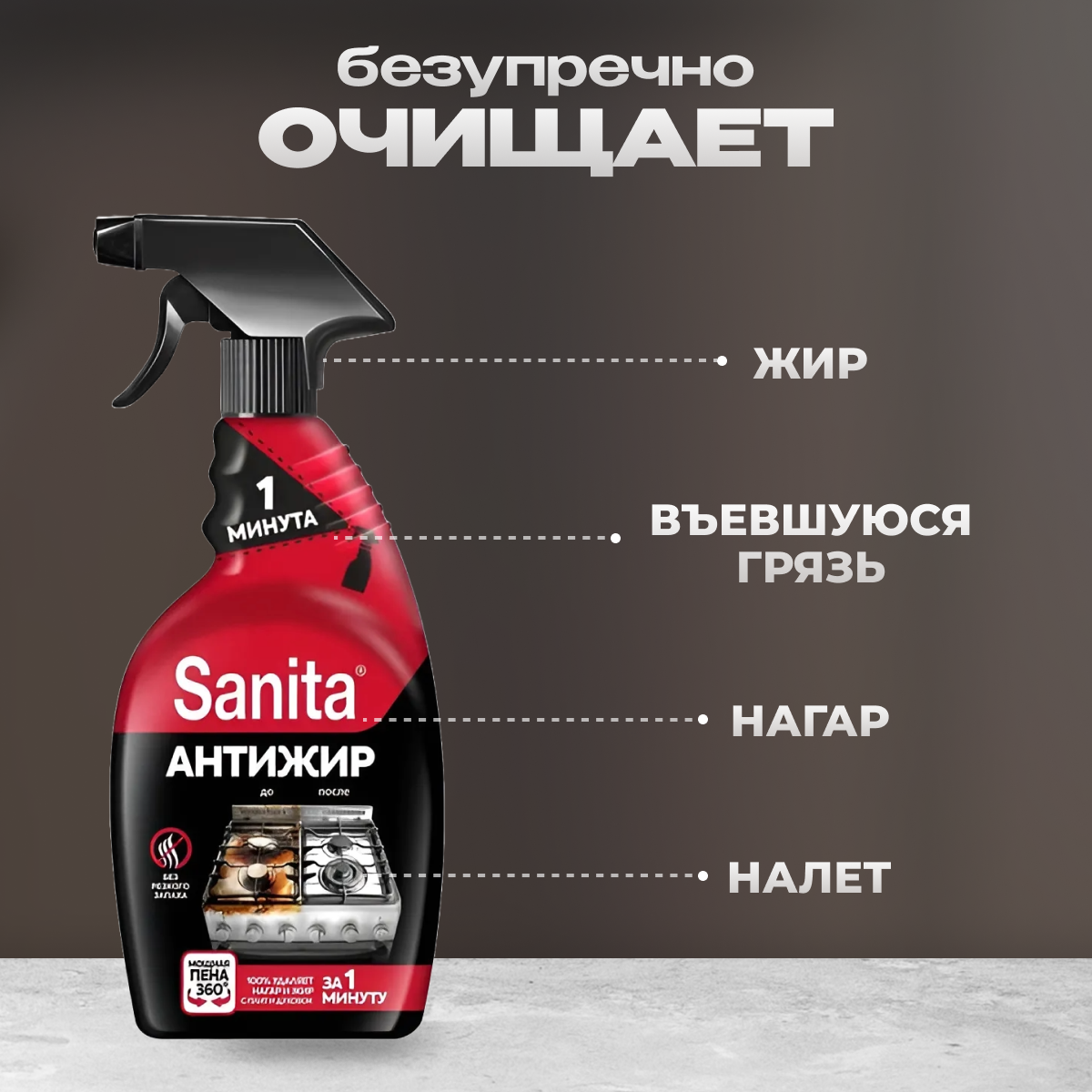 Санита Sanita спрей антижир 1 минута 500 мл для кухни чистящее средство спрей для уборки