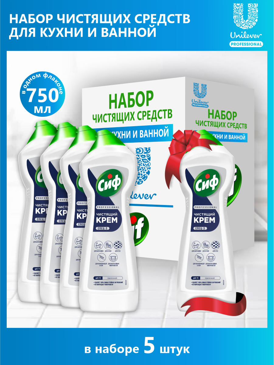 СохранитьНабор Универсальное чистящее средство Крем CIF PROFESSIONAL ACTIVE FRESH 750 мл. х 4 шт.+1 в подарок интересное:
