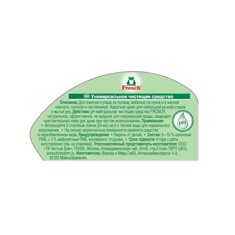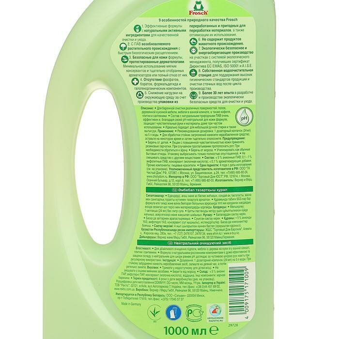 Чистящее средство Frosch универсальное, 1 л (для полов, мебели, кухни и ванной) Эко (707100)