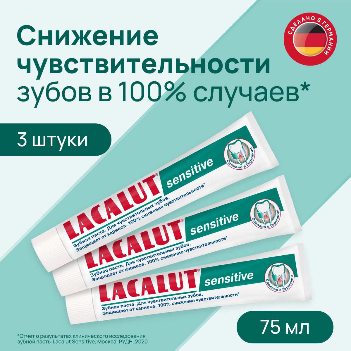 Купить Зубная паста LACALUT Sensitive 75 мл, спайка из 3 штук