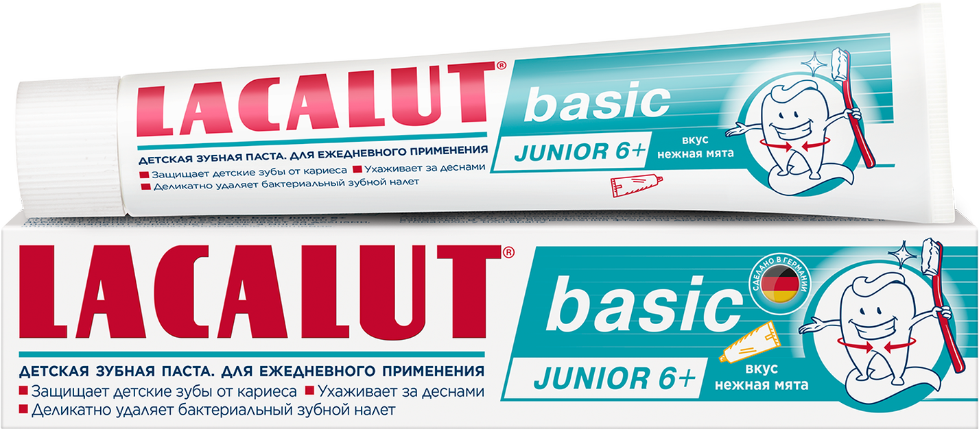 Детская зубная паста Lacalut Basic Junior 6+, для детей от 6-ти лет, 60 гр, спайка 2 штуки