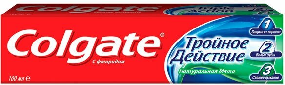 | Отзыв: | 1. Есть у меня паста Colgate тоже "Тройное действие", тоже комплексная. Только нет надписи, что натуральная мята. На сайте такой не нашёл, решил написать здесь.