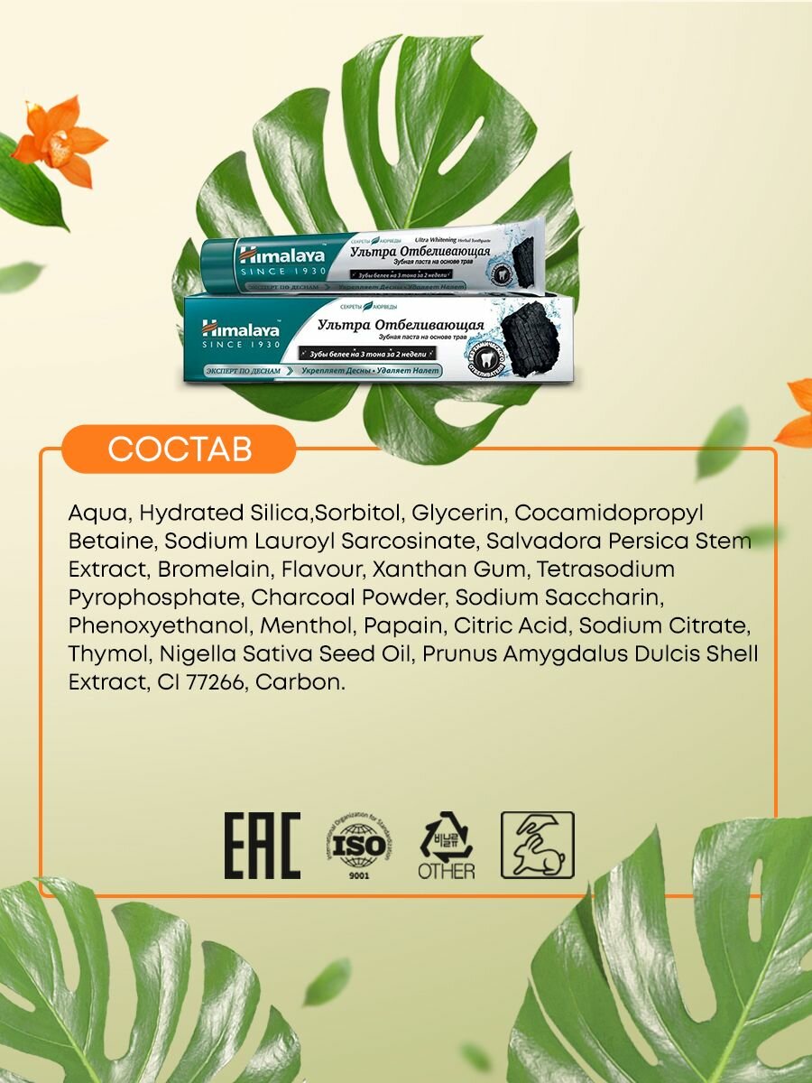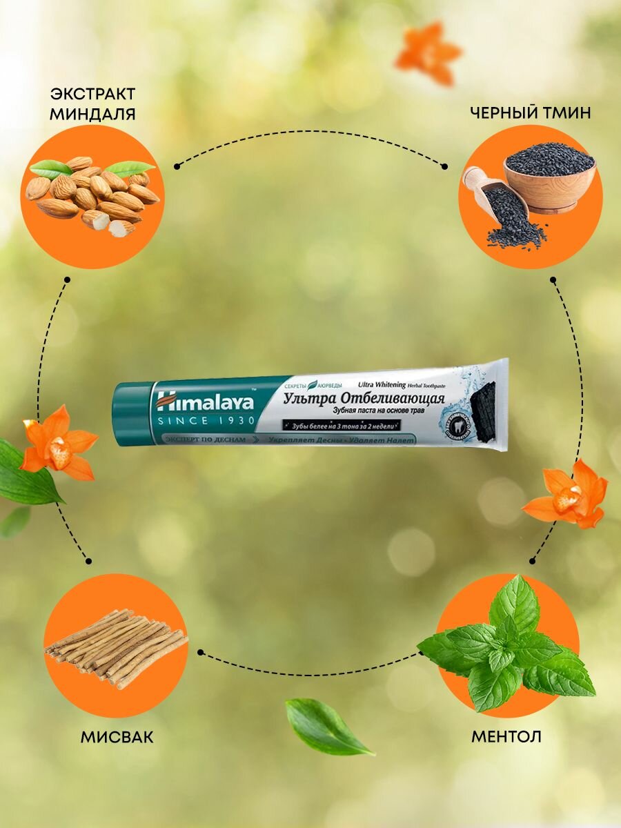 Купить Зубная паста Ультра Отбеливающая на основе трав, 75 мл, Himalaya Herbals