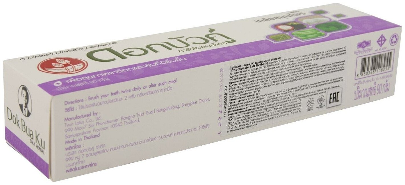 Зубная паста TWIN LOTUS Herbal Plus Salt (Плюс соль), 90 г