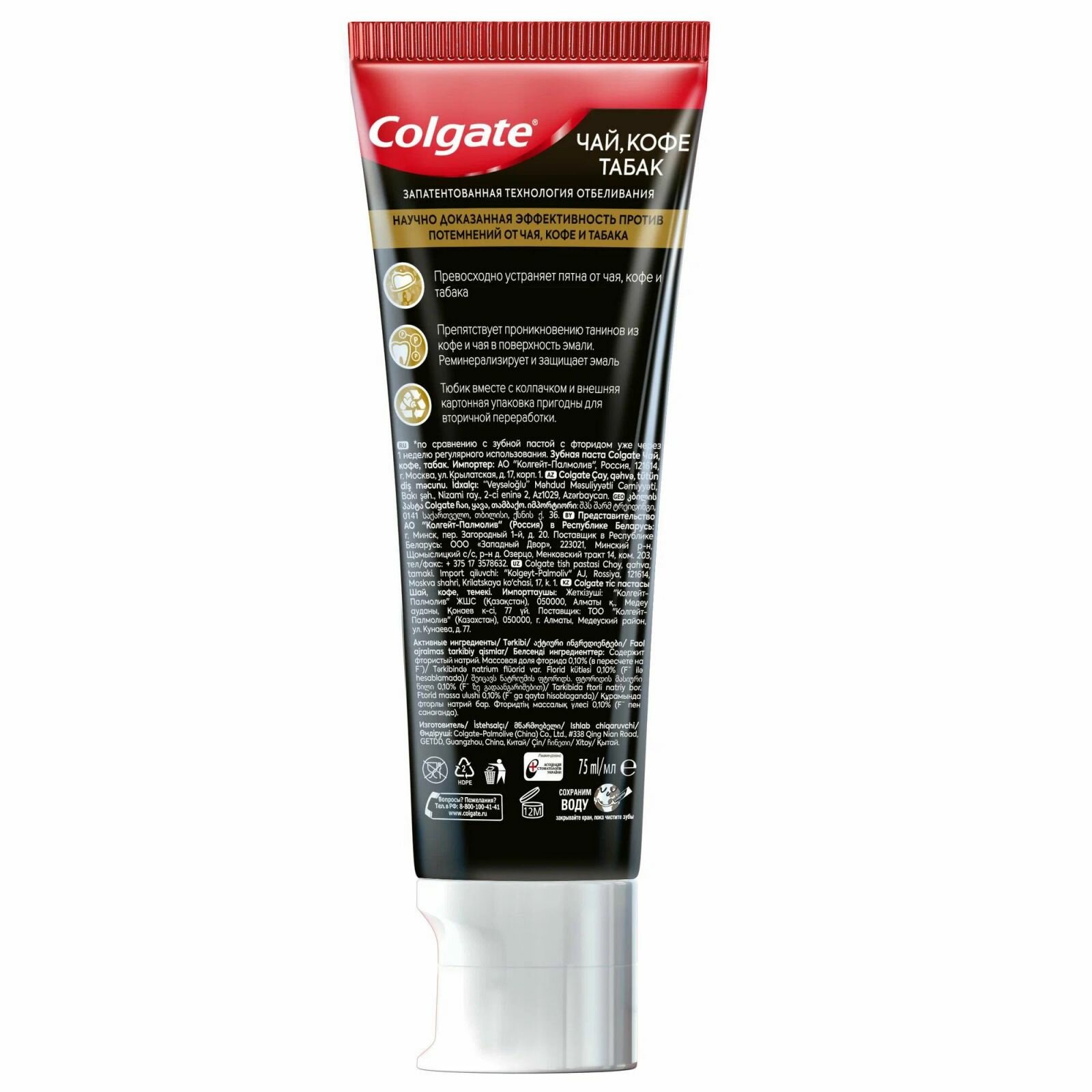 Купить Зубная паста Colgate "Для ценителей чая, кофе, табака", отбеливающая, 75 мл