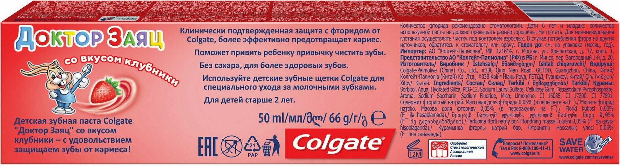 СохранитьColgate Зубная паста Доктор Заяц со вкусом клубники, 50 мл - 1 шт интересное:
