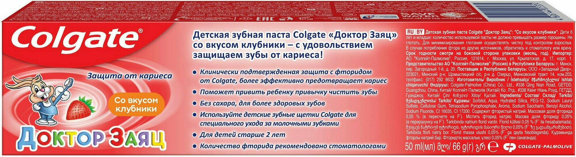 Купить Colgate Зубная паста Доктор Заяц со вкусом клубники, 50 мл - 1 шт