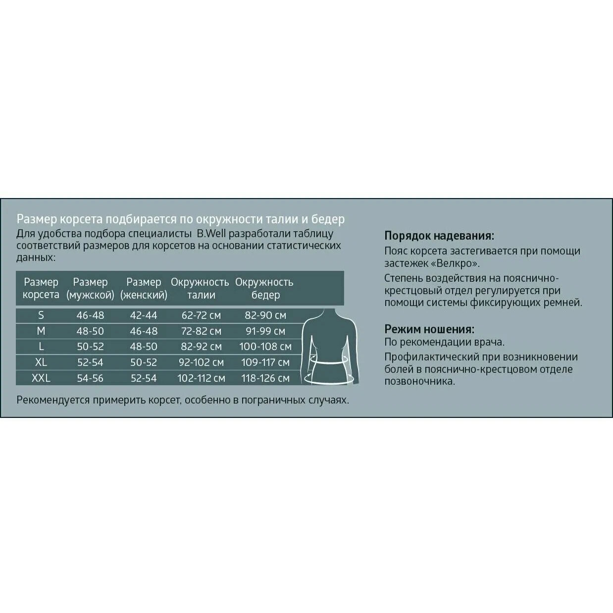 Корсет ортопедический на пояснично-крестцовый отдел B.Well W-152 размер S