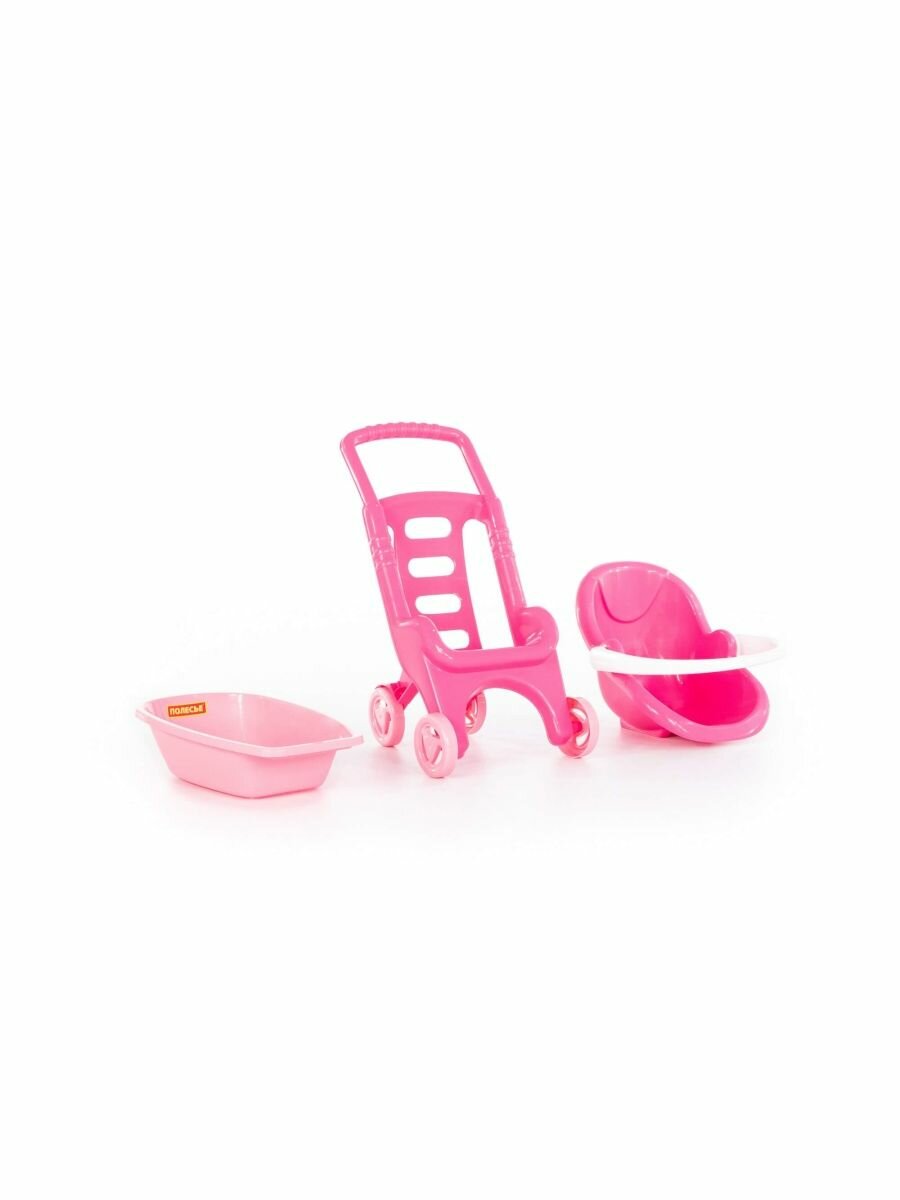 Коляска для кукол Полесье переноска и ванночка "Pink Line 3 в 1", в сеточке (42842)