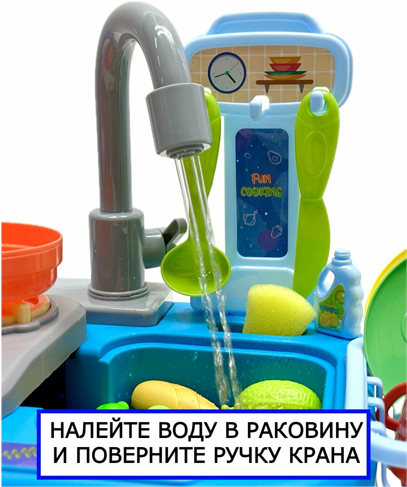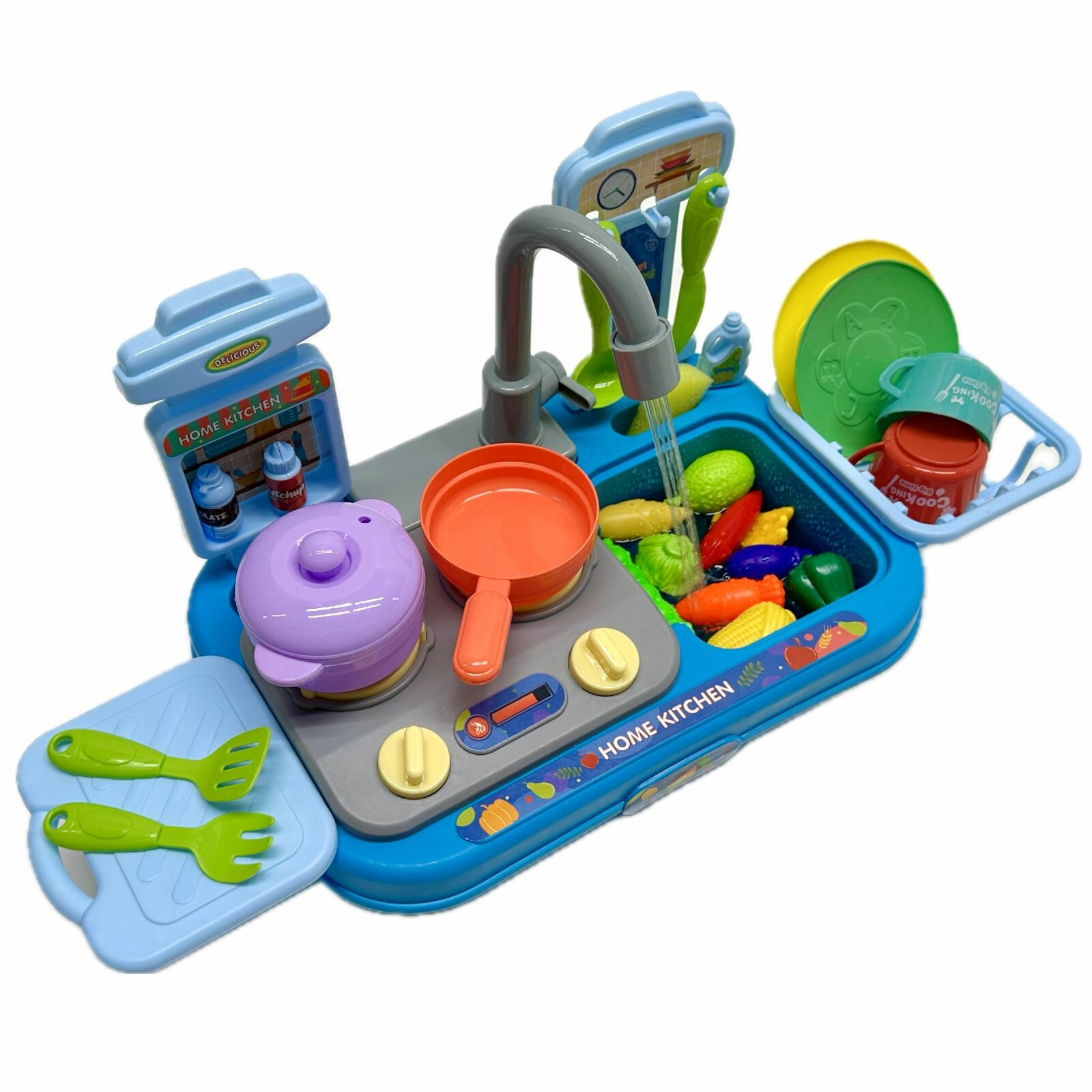 Купить Детская игровая кухня с водой Кухонная мойка с набором посуды и овощами, раковина Dishwasher, умывальник, 30 предметов, 46х21х20 см