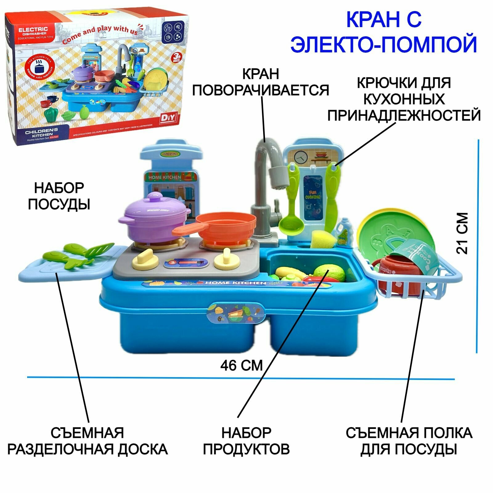 Ниже Вы можете прочитать отзывы на Детская игровая кухня с водой Кухонная мойка с набором посуды и овощами, раковина Dishwasher, умывальник, 30 предметов, 46х21х20 см, ознакомится с подробными характеристиками, посмотреть интересные обзоры и фотографии на Детская игровая кухня с водой Кухонная мойка с набором посуды и овощами, раковина Dishwasher, умывальник, 30 предметов, 46х21х20 см.