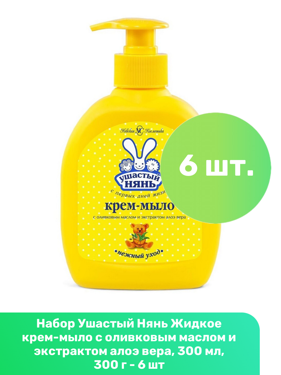 Купить Ушастый Нянь Жидкое крем-мыло с оливковым маслом и экстрактом алоэ вера, 300 мл, 300 г - 6 шт