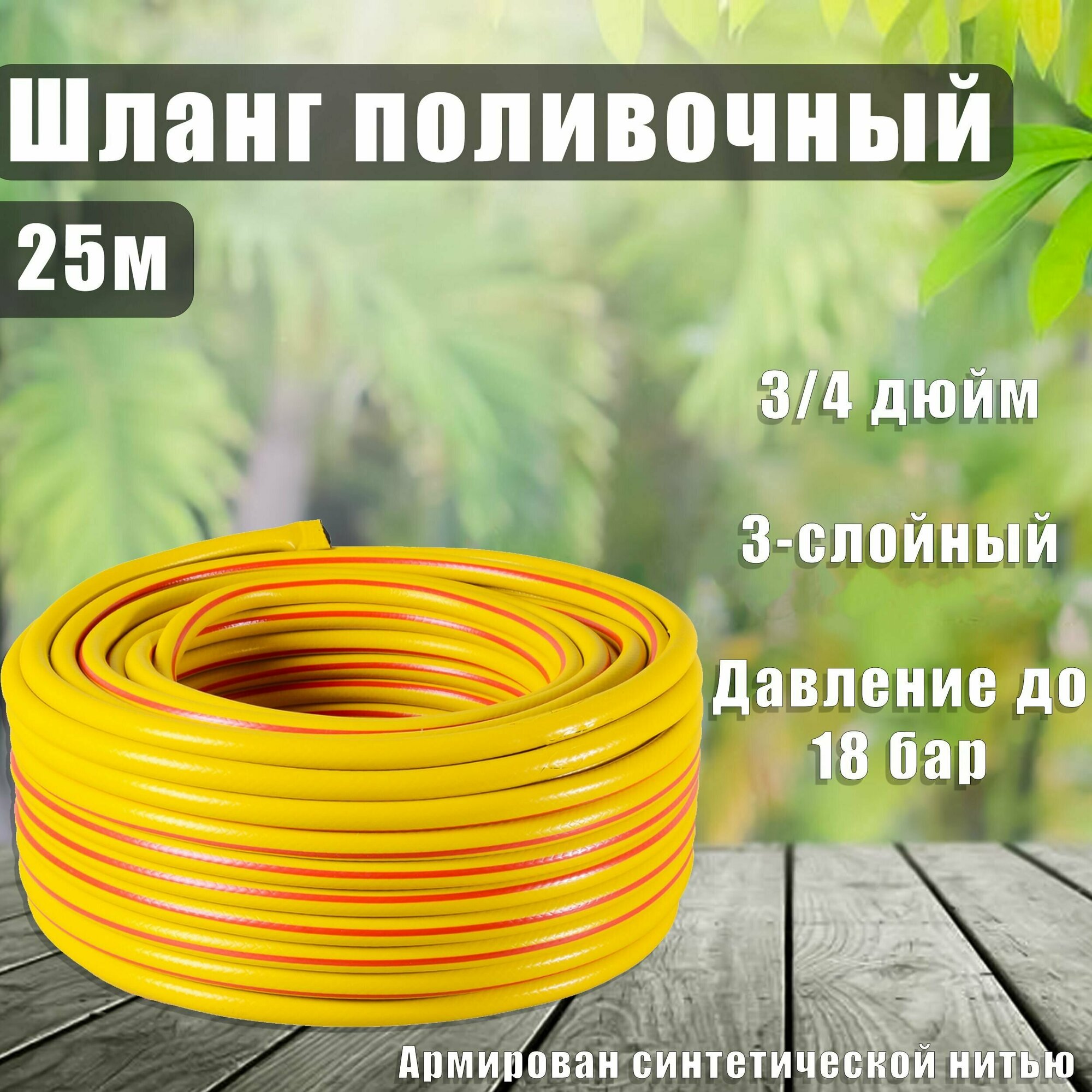 Шланг поливочный ПВХ усиленный пищевой трехслойный армированный 3/4 25 м жёлтый Вихрь