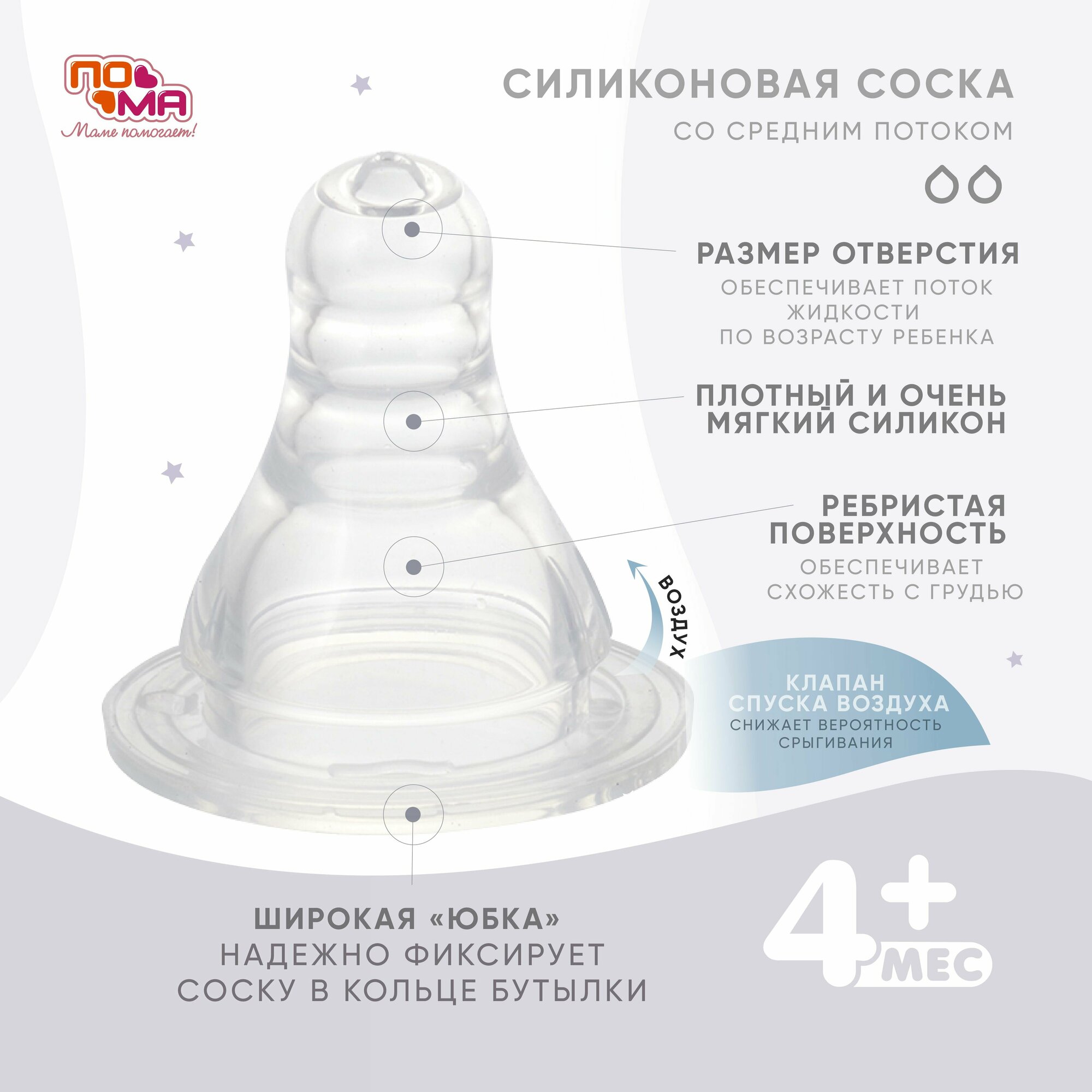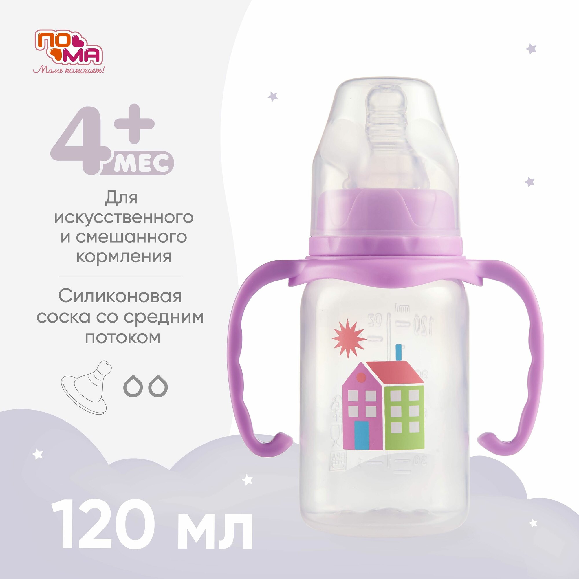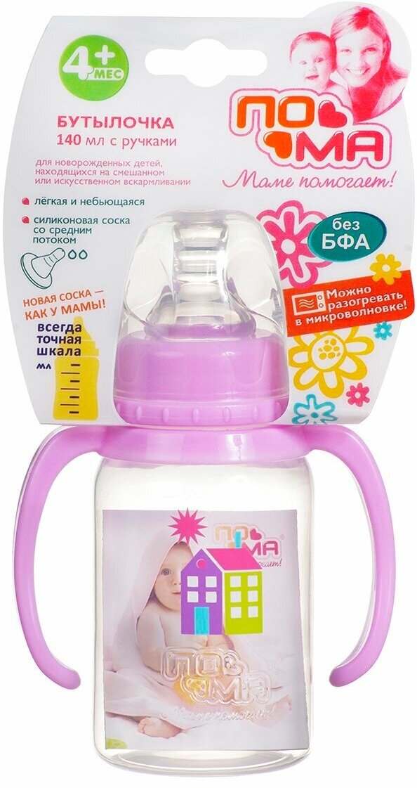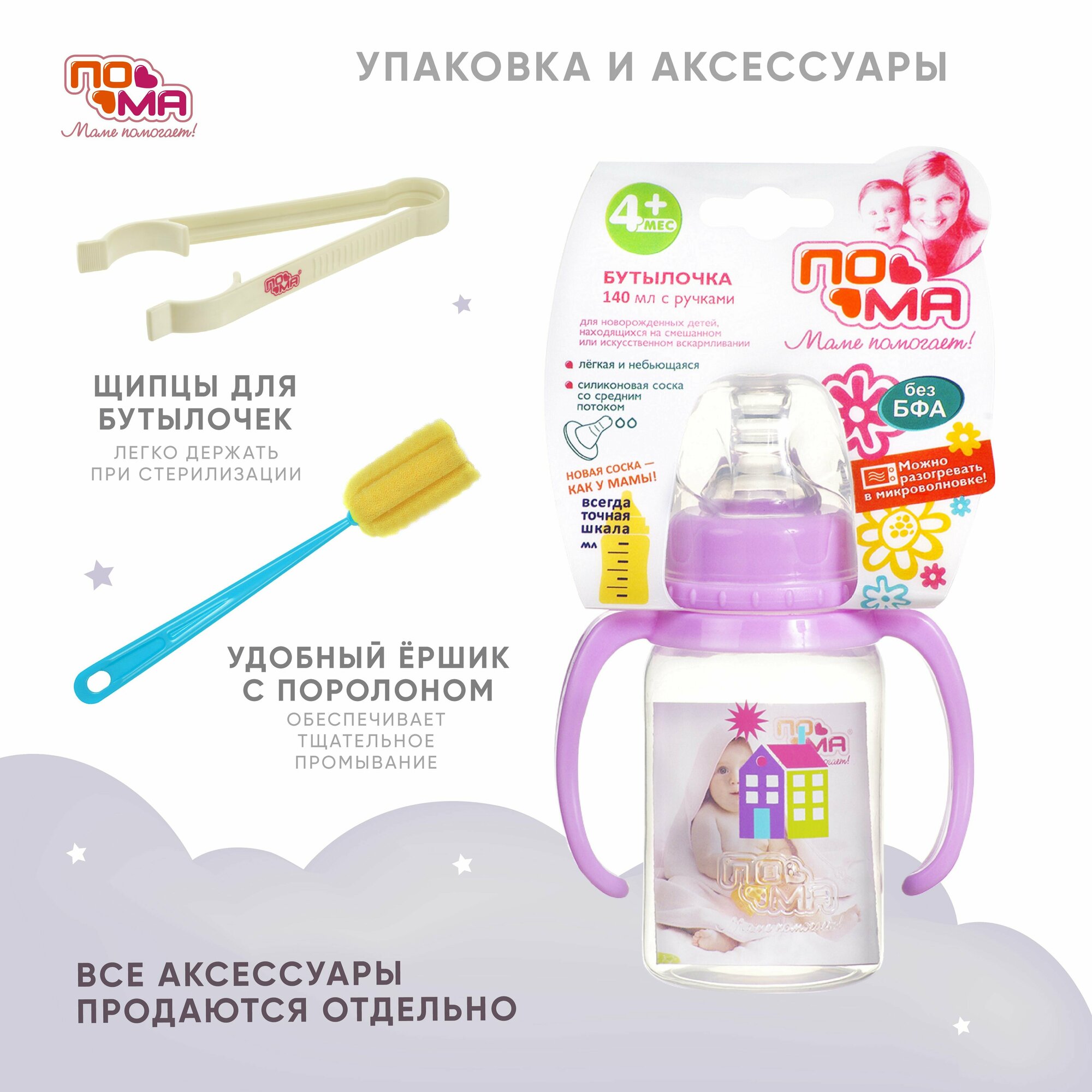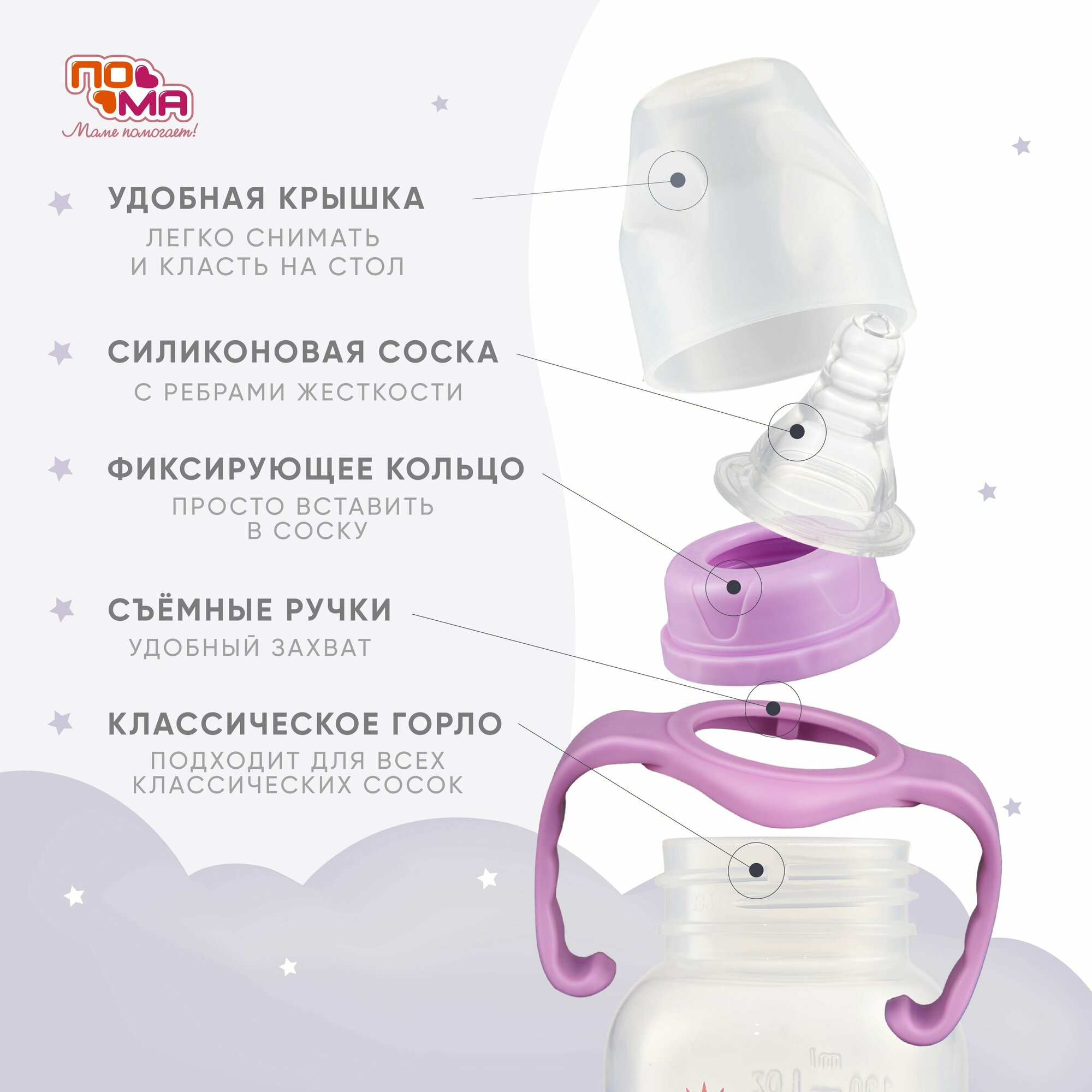 Бутылочка пома 140 мл с ручками с силиконовой соской со средним потоком, 4+, сиреневая интересное: