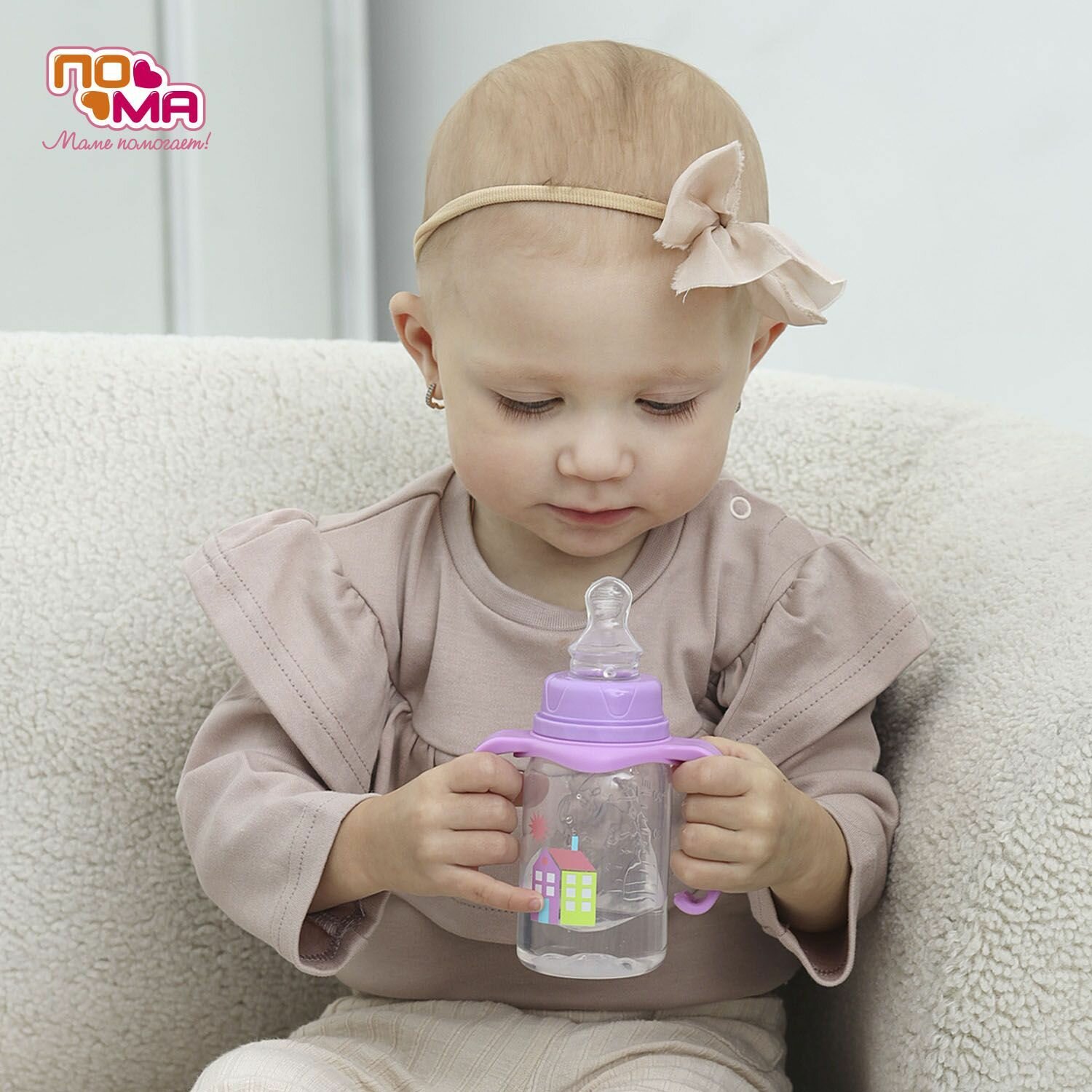 Купить Бутылочка пома 140 мл с ручками с силиконовой соской со средним потоком, 4+, сиреневая