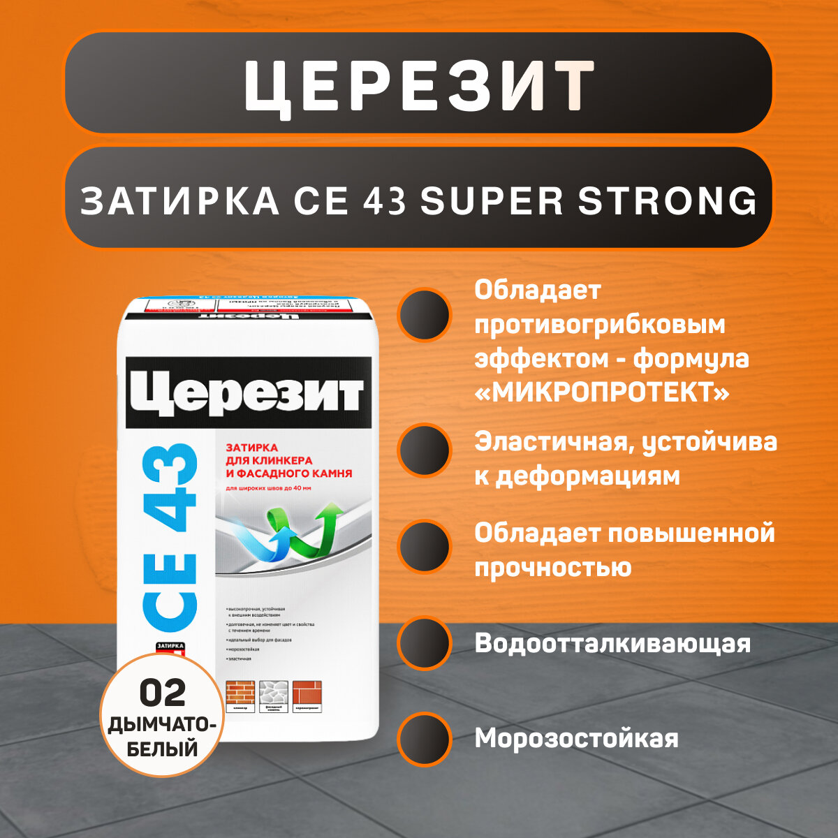 СохранитьЦерезит CE 43 Super Strong, цвет дымчато белый 02, фасовка 25 кг интересное: