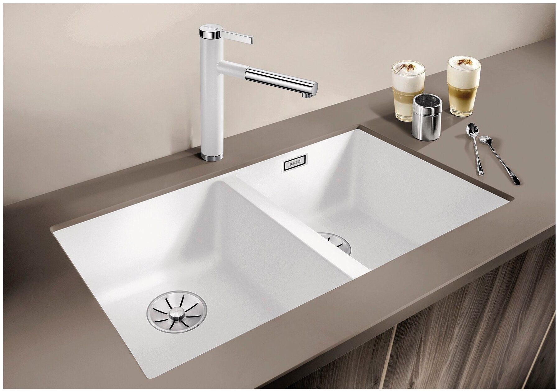 Мойка Blanco Subline 350/350-U кофе, отводная арматура InFino®