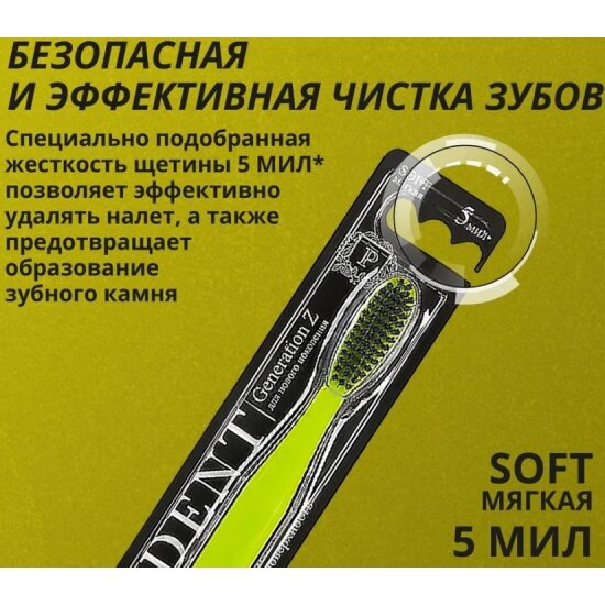 СохранитьЗубная щетка PresiDENT Generation Z 12-18 лет, зеленый / черный, мягкая щетина, диаметр щетинок 0.13 мм интересное: